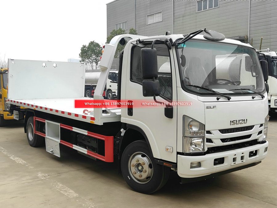 190HP ISUZU ELF Flabted Wrecker Truck 6.5m 5Tons Loading tablet Export o Uzbekistan