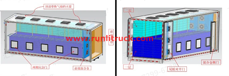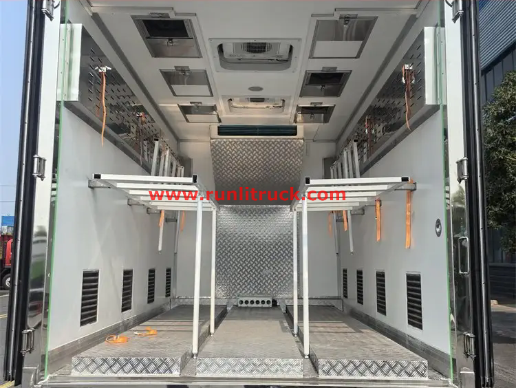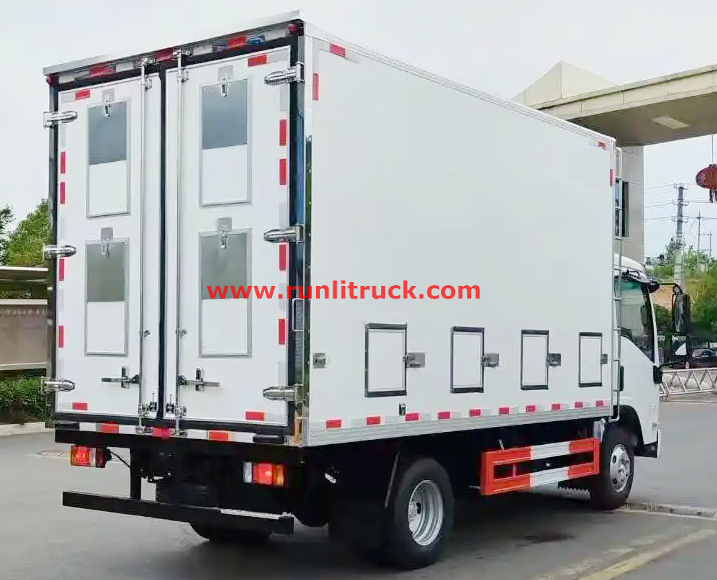 As a constant temperature transport vehicle for chicken chicks, the core function of the vehicle is to provide a stable and suitable temperature environment for the chicks. ISUZU KV100 4x2 4T to 6Tons Chicken fry and poultry Constant temperature transport vehicle is equipped with an advanced temperature control system, which can accurately adjust the temperature inside the carriage. Real time monitoring of temperature changes through intelligent sensors, and automatic activation of heating or cooling equipment according to the set temperature range, ensuring that the cabin always maintains the optimal temperature range required for chicken seedling growth. In addition, the carriage is equipped with a good ventilation system to ensure air circulation and provide sufficient oxygen for the chicks, effectively reducing their stress response during transportation and greatly improving their survival rate.